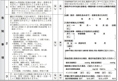 3年以内に手術を受けたり、2週間以上にわたり治療を受けた場合などは告知が必要です。
